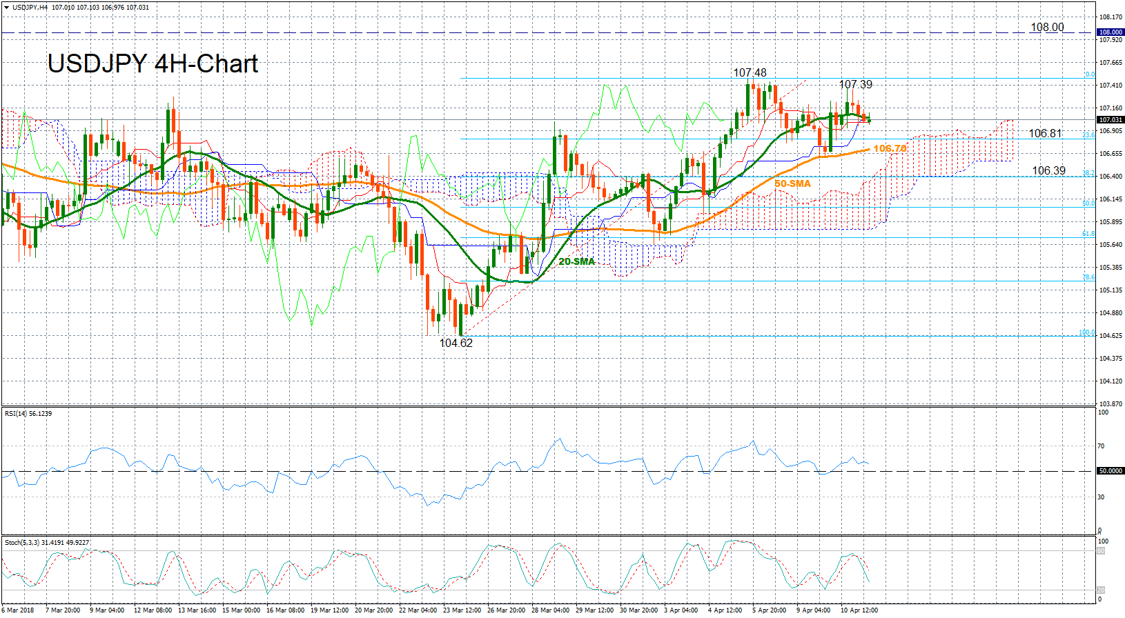 反対のシナリオの場合、USDJPYは104.62円から107.48円にかけてのフィボナッチリトレースメント上昇トレンド23.6%上の106.81円に向けて下落するでしょう。一段と下落した場合、50日SMA上の106.70円とフィボナッチリトレースメント38.2%上の106.39円が控えています。