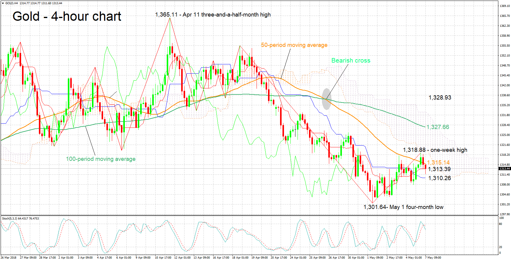 ゴールド価格は約0.2%低下し、現在の所、1313ドル付近で推移しています。米ドルの回復により、過去3週間のゴールド価格は軟調推移を継続しています。