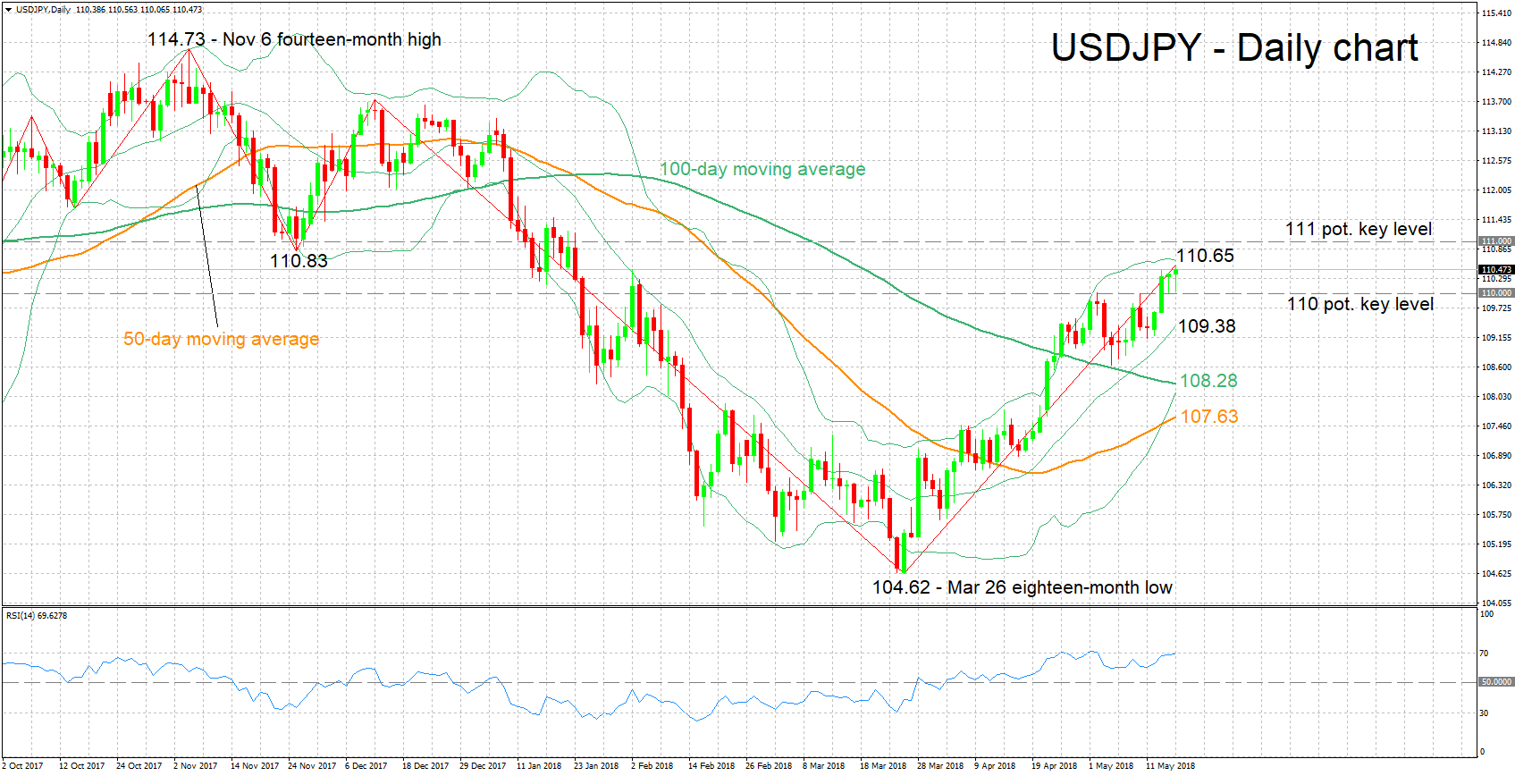 米国債と日国債の利回りの乖離が継続する場合、USDJPYの上昇も継続するでしょう。ボリンジャーバンド上部の110.65円付近がレジスタンスとして機能するでしょう。一段と上昇した場合には、110円台越えが視野に入るでしょう。
