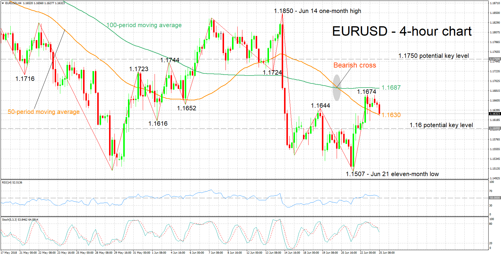 ユーロ/ドルは約0.15%下落した1.1640ドル付近で取引されました。貿易問題の他に、通貨市場に影響するリスクイベントは、メルケル独首相と連立パートナーとの移民政策を巡る協議になるでしょう。