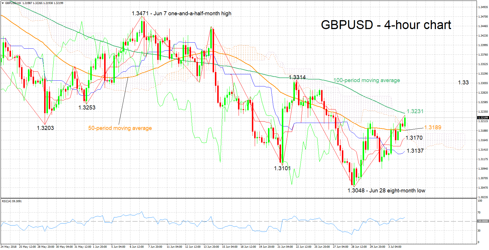 GBPUSD は6月下旬に8か月ぶり安値1.3048ドルまで急落後、大幅に回復しました。現在、GBPUSD は本日前半に記録した1週間ぶり高値1.3227ドル付近で推移しています。上昇した転換線と基準線は、短期的強気相場の兆しを示しています。RSIにも同様のサインが現れています。
