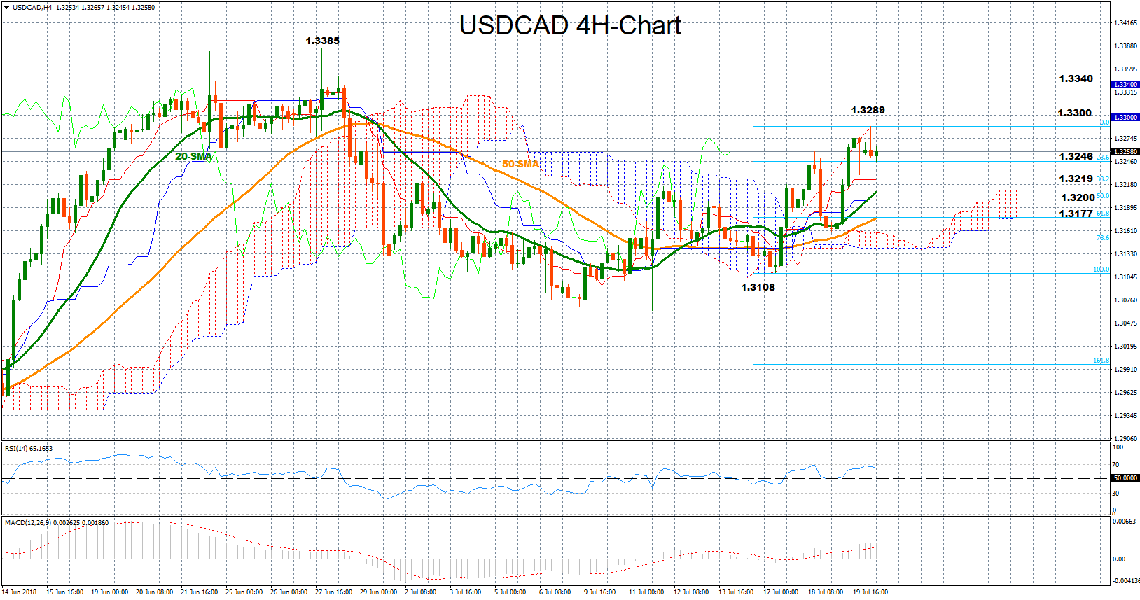 USDCADは、4時間足チャート上で1か月ぶり高値付近の一目均衡表の雲の上を推移しており、現在の所、保ち合い相場を示しています。RSIは50を超えており、MACDはゼロと赤いシグナルラインを超えていることから、共に上昇範囲で推移しています。しかしながら、RSIもMACDの上昇に鈍化が見られることから、短期的な保ち合い相場の継続が示されています。本日発表されるカナダ消費者物価指数と小売売上高の結果次第で、カナダドルが動くでしょう。