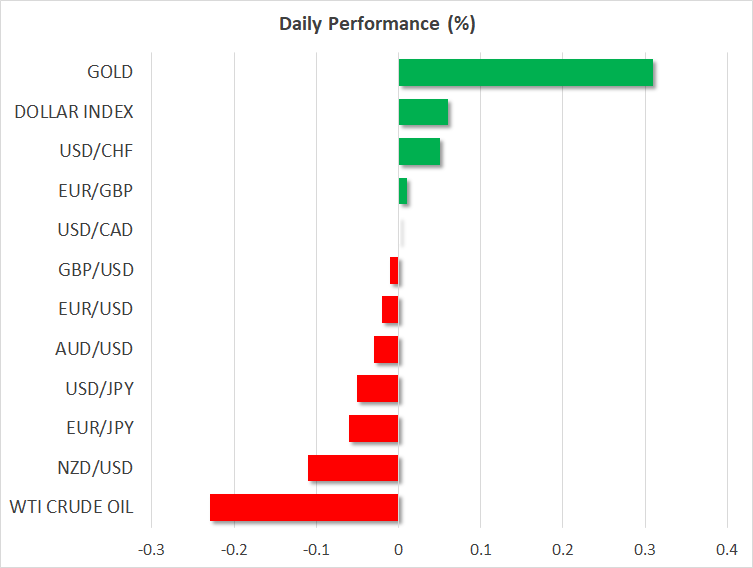 翌週の米中首脳会談での通商協議の再開への期待が上昇したことも、株価上昇要因となりました。注目すべきことは、リスク資産と安全資産が共に上昇していることです。本日前半のゴールドは、6年ぶり高値1410ドルまで急騰しました。昨日のスイスフランは、外国為替市場で最も堅調推移した通貨でした。