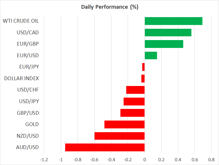 外国為替市場でも、リスクオフの流れが目立ちました。豪ドルとNZドルは最も軟調推移しました。豪ドル/ドルはレジスタンス水準の0.6550ドルまで下落後、直近では1%下落して推移しています。NZドル/ドルは、0.61ドル台を割り込みました。