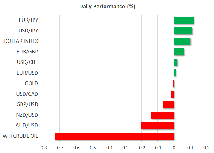 株式市場の混乱は、米ドルの安定に繋がったものの、本日の米ドルインデックスは昨日の上昇後、下落しました。円、及びスイスフランが上昇しているものの、少なくとも通貨市場では、週末に近づくにつれて、ムード改善の兆しが見られています。