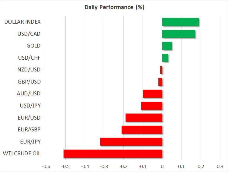外国為替市場では、複数の中央銀行が金融正常化のペースを鈍化させる可能性が浮上し、楽観ムードが若干後退し、リスク資産の上値が重くなり、米ドルが上昇しました。