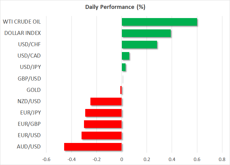 投資家の心理を反映し、米ドルは荒い値動きとなりました。しかしながら、市場が落ち着きを取り戻すにつれて、米ドルは回復しました。本日前半の米ドルインデックスは96台まで回復し、その後の国債利回りの若干低下により、僅かに下落しました。