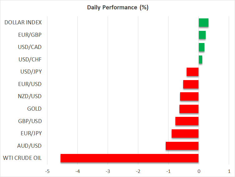 中国国内の感染者数増加を受けて、今週の取引はリスクオフムードでスタートしました。株価は先週金曜日の下げ幅を拡大させ、米ドルインデックスは2年ぶり高水準となりました。感染拡大を受けて、上海の規制は再び強化されました。
