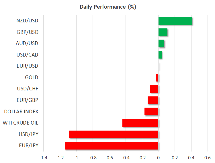 昨日の軟化を示す指数発表後、ニューヨーク連銀ウィリアムズ総裁及びFRBバー副議長両氏がFRBの金利政策に変更はない方針を示唆しました。次期FOMC会合前のブラックアウト前に、米国債利回りの低下を歓迎しないパウエル議長がその会合後再びタカ派姿勢を示すのではと憶測が高まっています。