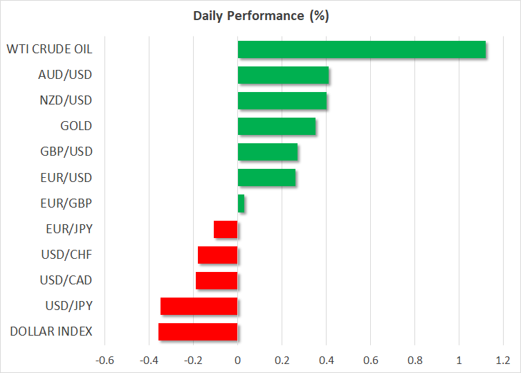 昨日、米ドルは他の主要通貨全てに対して上昇しましたが、本日はやや下落しています。
