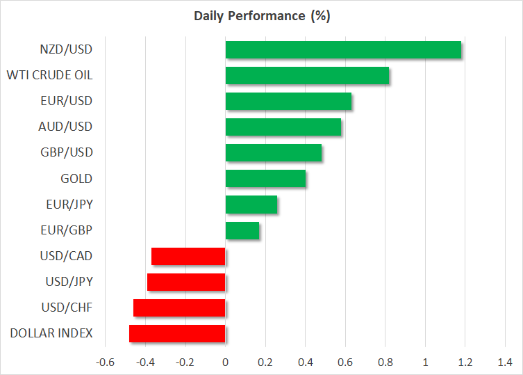 市場のリスクセンチメント回復により、米ドルは本日下落しており、日本円も後退しています。