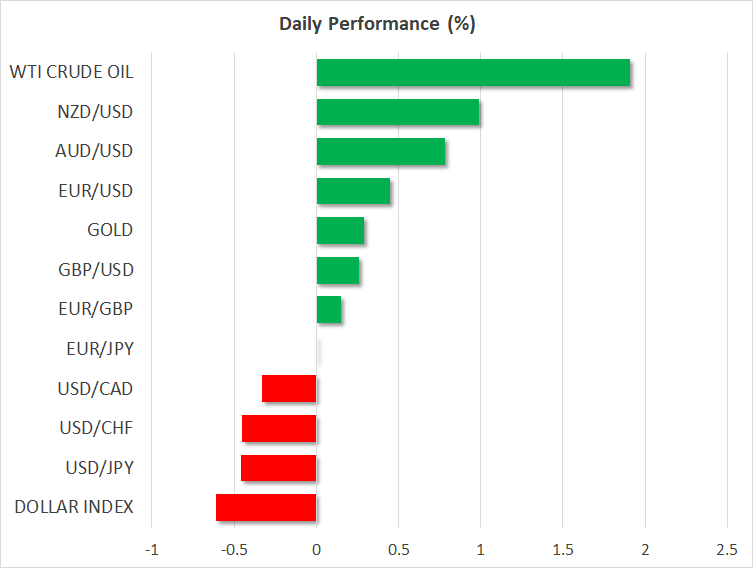 一方で、米長期金利の低下は、日本円にとっては絶好なタイミングとなり、月曜日に1ドル151円以上まで進行した円安は、昨日反転しました。本日も円は、150円台をわずかに上回る辺りで安定しており、日本政府による介入のプレッシャーを和らげています。ユーロとポンドも本日反転しています。