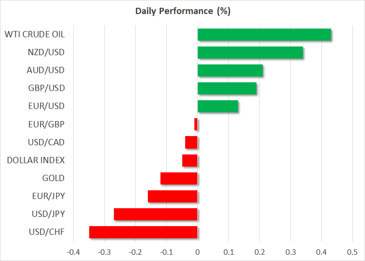これに先立ち、米10年債利回りは先週4.70%を上回った6か月ぶりの高水準から、FOMC会合後には4.57%まで後退し、米ドルも下落しています。今週の月曜日に、日本政府による覆面介入によって円高となったことから、米ドルはすでに打撃を受けています。