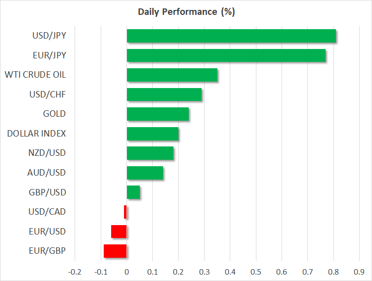 先週は米国債利回りが急落したため、米ドルにも圧力がかかり、主要通貨に対して8週間ぶりの安値まで下落しました。しかし本日は、米国債利回りも米ドルも安定しており、特に安全資産である日本円とスイスフランの下落から恩恵を受けて、米ドルは堅調に推移しています。