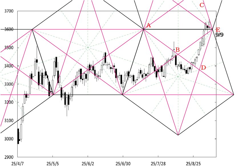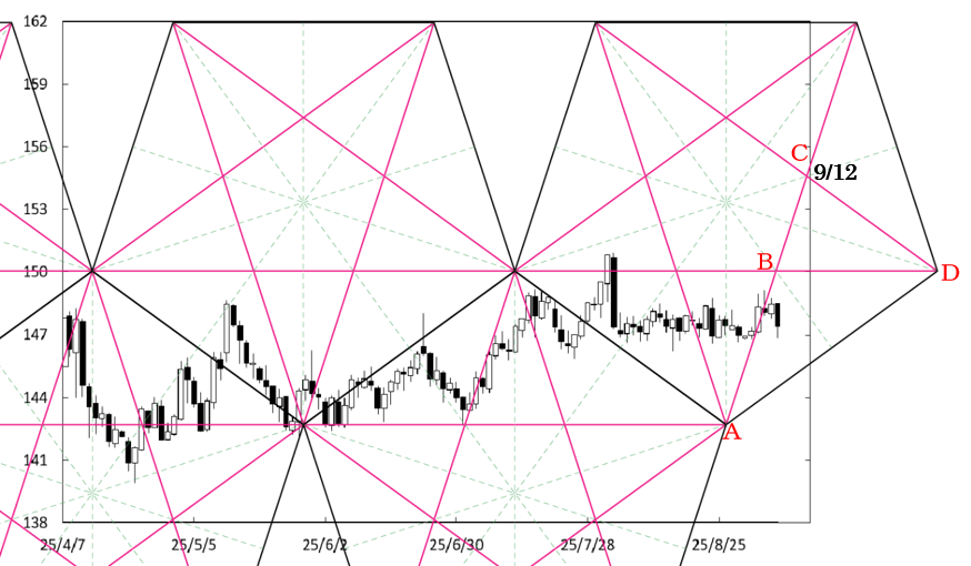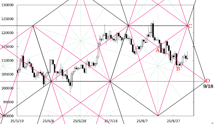 ここでは、C点に注目したい。先週末にC点が位置する時間帯が変化日となり、新しい動きが出てくるのか否かがポイントになる。
