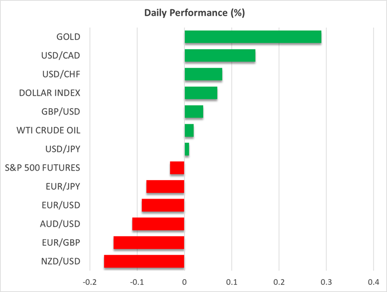 昨日の米株式市場は、ハイテク株上昇を背景に3日連続で最高値を更新したため、引き続き活況に満ちたセッションとなりました。米ドルは直近の上昇分の一部を還元しましたが、本日のFRBパウエル議長による講演を前に警戒感が広がる中、本日の米ドルはやや安定しています。先週のFOMC会合にて、FRBが緩和サイクルが再開したことを受けて広く前向きなセンチメントとなっているものの、安全資産であるゴールドは最高値を更新して上昇しています。