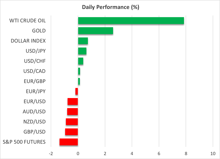 米ドルもまた安全資産として上昇しており、主要通貨に対して1か月ぶりの高値まで上昇する一方、スイスフランの需要も高まっています。