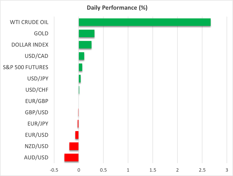 リスク選好が低調な一因には、本日の3月の景況指数(PMI)が軟調であることもあります。原材料のコスト急騰にもかかわらず、欧州各国とイギリスの製造業活動は堅調だったように見えるものの、サービス業は中東紛争から打撃を受けて、欧州とイギリスともに予想よりも成長が鈍化しました。