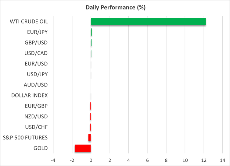 この控えめな楽観ムードは、ブレント原油先物6月限にも反映されており、WTI原油先物5月限が12.2%急騰したのに対し、「わずか」8%の上昇にとどまって取引を終えました。これは、原油先物のフォワードカーブがバックワーデーションの状態にあることを示唆しています。さらに、ここ数日のWTI原油先物のブレント原油先物に対するより強い上昇は、中東の産油国に代わる供給先を求めて買い手が動いた結果、米国産原油への需要が急増したことにも起因しています。